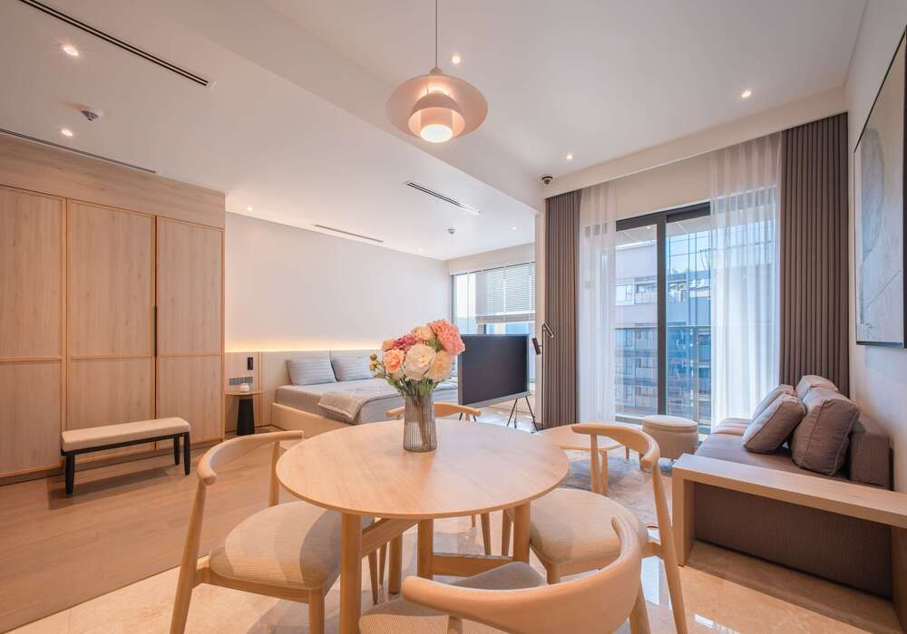 Mẫu 1 phòng The Marq với cảm hứng từ hạt cà phê, biến tấu thành tông màu mang tính chủ đạo trong thiết kế nội thất, phù hợp với phong cách sống nơi thành thị của những khách hàng độc thân.